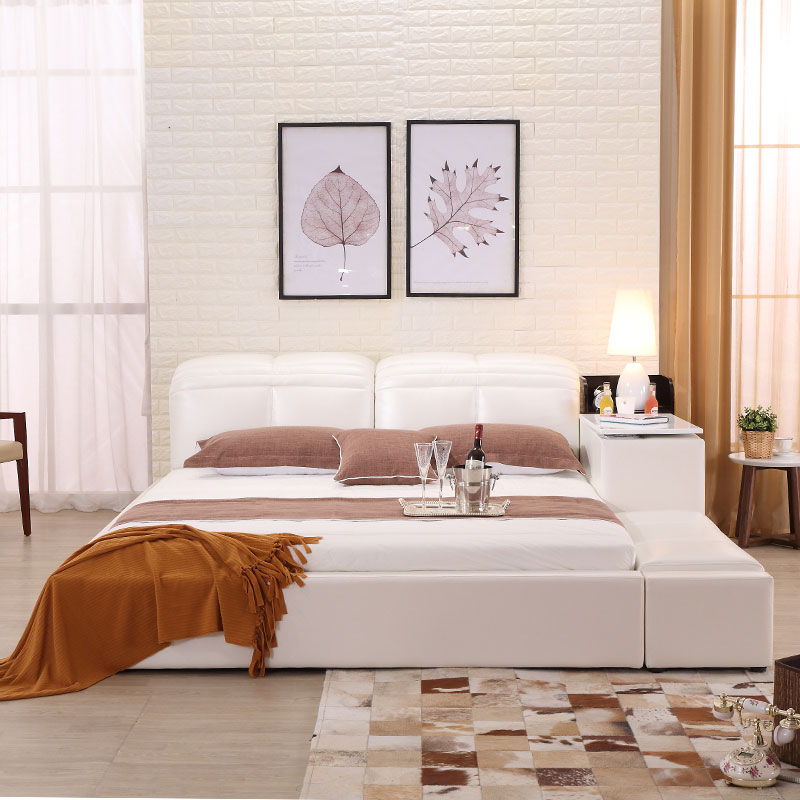 商品名称:创意真皮床双人床现代婚床1.8米1.5榻榻米床储物床皮艺床软床大床 床侧储物 升降靠背 双ll价格 更低